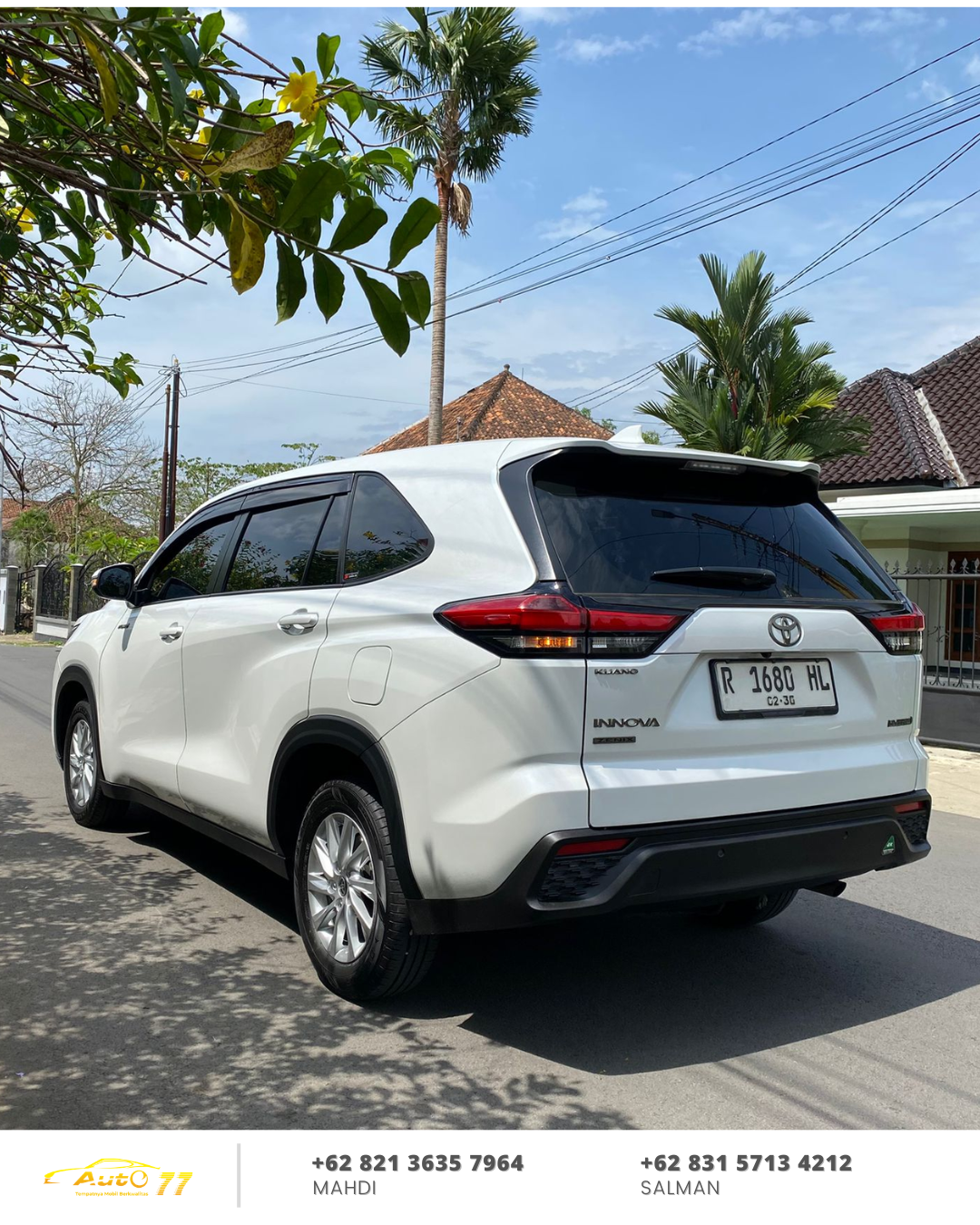 Auto 77 menghadirkan unit Innova Zenix tahun 2024/2025 yang siap pakai, nyaman, dan cocok untuk kebutuhan keluarga maupun operasional harian. MPV premium ini dikenal dengan desain modern, kabin luas 7 penumpang, serta teknologi terkini yang menunjang kenyamanan dan keselamatan berkendara.